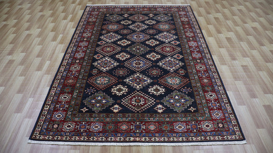 6x8 Ft Oriental Kazak Area Rug, Red Afghan Hand Knotted Wool Traditional Rectangle Carpet, Living Room Rug, Bedroom Rug, Dining Table Rug