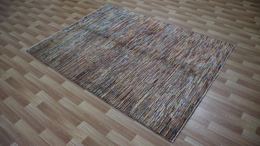 5x6 ft Abstract Gabbeh Area Rug, Multicolor Afghan Hand Knotted Veg Dyes Wool Transitional Rectangle Carpet, Living Room Rug, Bedroom Rug