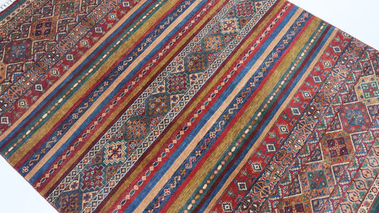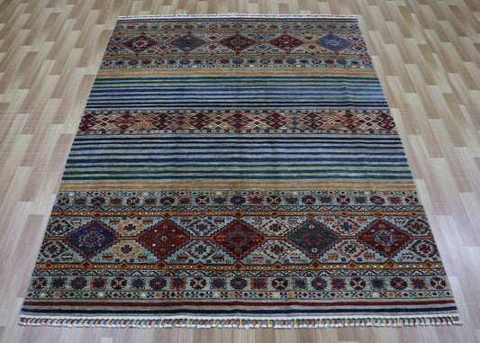 6x8 Ft Multicolor Khorjin Afghan Hand Knotted Tribal Area Rug