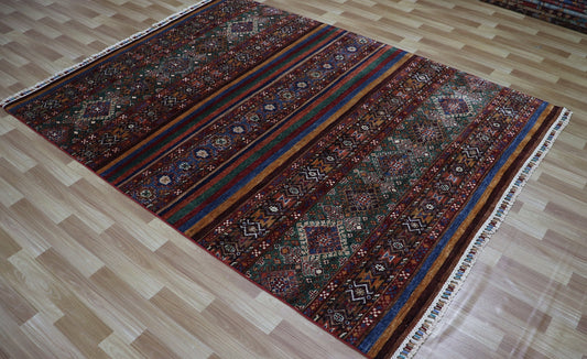 6x8 ft Oriental Striped Area Rug, Afghan Hand Knotted Wool Traditional Rectangle Carpet, Rugs For Living Room, Bedroom Rug, Dining Table Rug