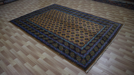 7x10 Ft Oriental Bokhara Area Rug, Afghan Hand Knotted Plush Wool Rectangle Area Carpet, Rug For Living Room, Bedroom Rug, Dining Table Rug