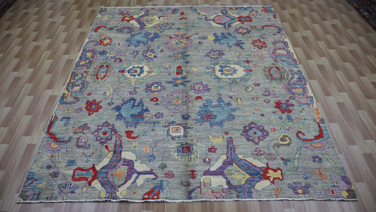 8x9 Ft Oushak Area Rug, Gray Afghan Hand Knotted Plush Wool Traditional Rectangle Carpet, Rug For Living Room, Bedroom Rug, Dining Table Rug