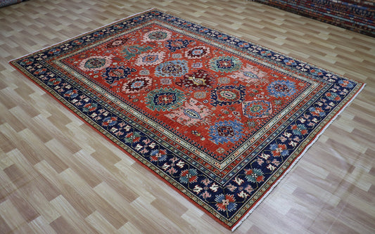 6x9 Ft Oriental Area Rug, Blue Red Afghan Hand Knotted Wool Traditional Rectangle Carpet, Rug For Living Room, Bedroom Rug, Dining Table Rug