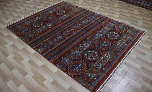 6x8 ft Afghan Area Rug, Multicolor Striped Hand Knotted Wool Traditional Carpet For Living Room, Bedroom Rug, Dining Table Rug, Tribal Rug