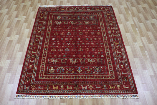 5x7 Ft Red Tribal Area Rug, Afghan Hand Knotted Wool Traditional Rectangle Carpet, 5x7 Rugs For Living Room, Bedroom Rug, Dining Table Rug