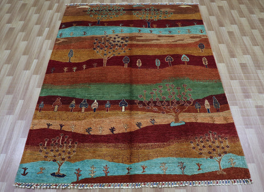 6x8 ft Tribal Gabbeh Area Rug, Red Afghan Hand Knotted Wool Traditional Rectangle Carpet, Rugs For Living Room, Bedroom Rug, Landscape Rug