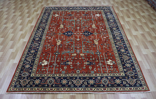 9x12 Ft Oriental Area Rug, Light Blue/Rust Red Afghan Hand Knotted Wool Traditional Carpet, Rugs For Living Room, Bedroom Rug, Large Rug