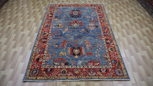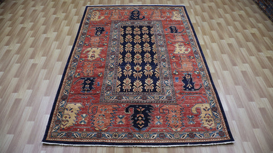 7x10 Ft Blue/Red Pazyryk Afghan Hand Knotted Tribal Area Rug