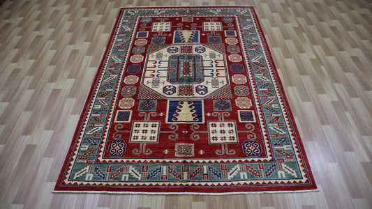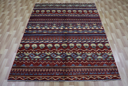 7x10 Ft Tribal Gabbeh Area Rug, Red Afghan Hand Knotted Wool Landscape Rectangle Carpet, Rugs For Living Room, Bedroom Rug, Dining Table Rug