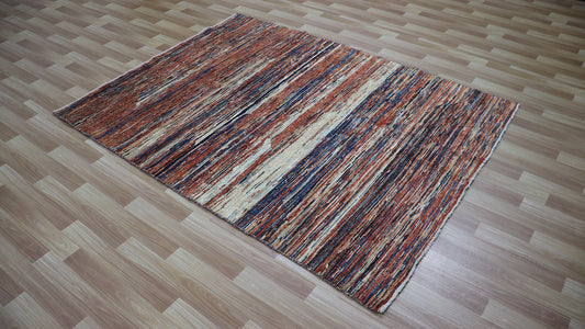 5x6 ft Red Transitional Area Rug, Afghan Hand Knotted Wool Abstract Rectangle Carpet, Rugs For Living Room, Bedroom Rug, Dining Table Rug