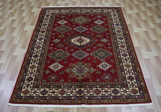 5x7 ft Red Oriental Area Rug, Afghan Hand Knotted Wool Traditional Carpet, Rugs For Living Room, Bedroom Rug, Dining Table Rug, Office Rug