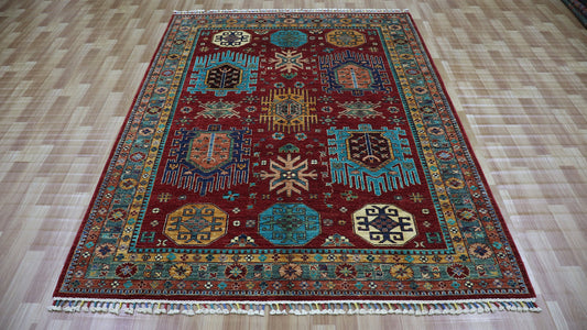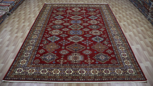 8x10 Ft Oriental Kazak Area Rug, Red Afghan Hand Knotted Wool Traditional Rectangle Carpet, Living Room Rug, Bedroom Rug, Dining Table Rug