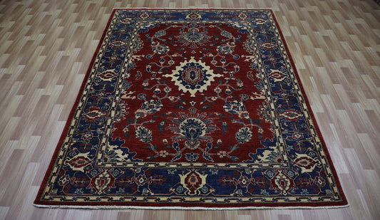 6x8 ft Oriental Area Rug, Red Blue Afghan Hand Knotted Wool Traditional Rectangle Carpet, Rug For Living Room, Bedroom Rug, Dining Table Rug