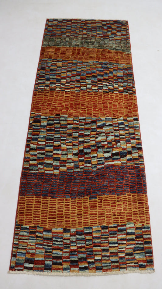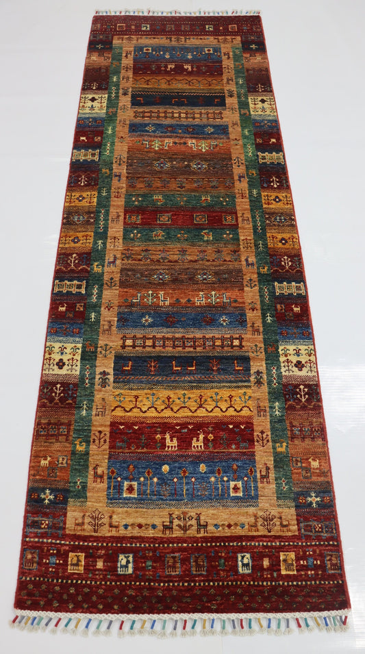 7 Ft Gabbeh Multicolor Afghan Hand Knotted Tribal Wool Runner Rug