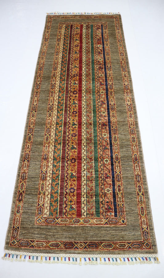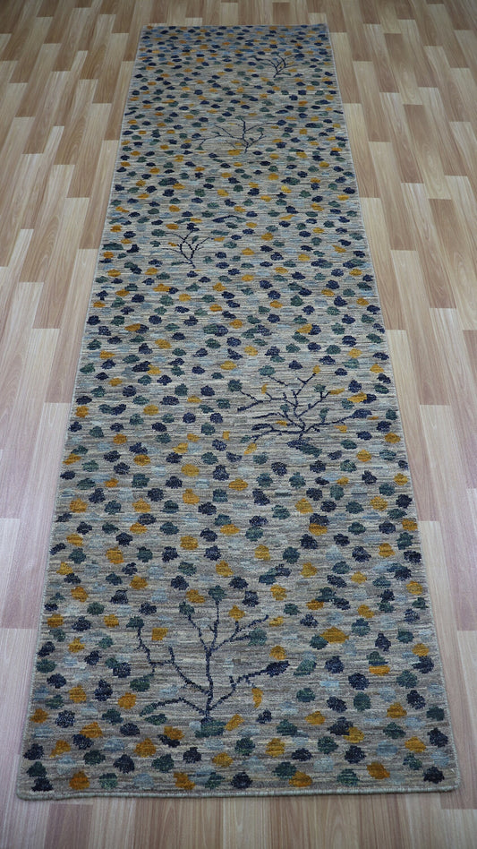 9 Ft Oriental Runner Rug, Gray Afghan Hand Knotted Wool Traditional Rectangle Carpet, Entryway Rug, Hallway Rug, Kitchen Rug, Foyer Rug