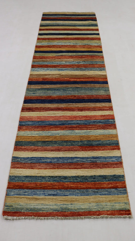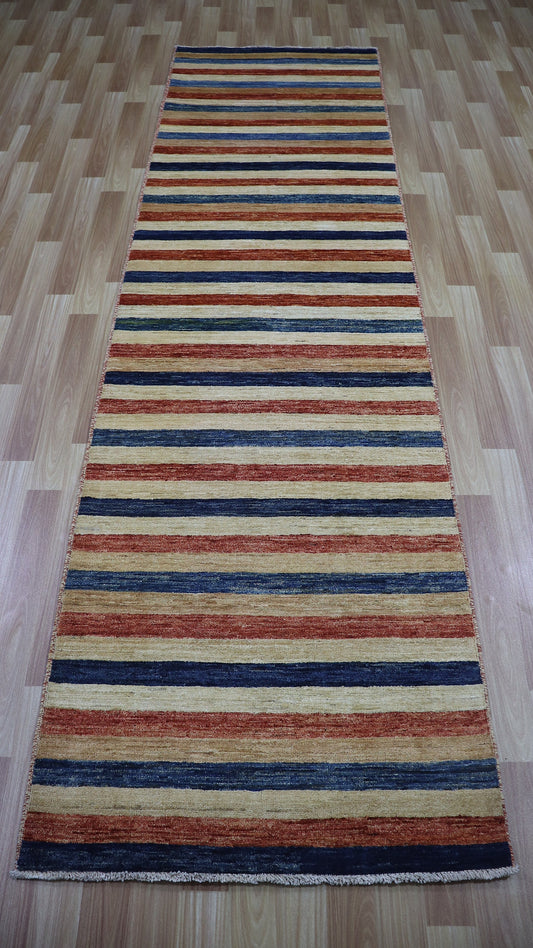 10 Ft Striped Gabbeh Runner Rug, Afghan Hand Knotted Wool Traditional Rectangle Carpet, Entryway Rug, Hallway Rug, Kitchen Rug, Foyer Rug