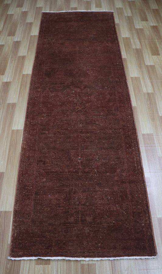 8 ft Afghan Abstract Runner Rug, Brown Hand Knotted Wool Transitional Carpet, Rug For Entryway, Hallway Rug, Foyer Runner Rug, Kitchen Rug