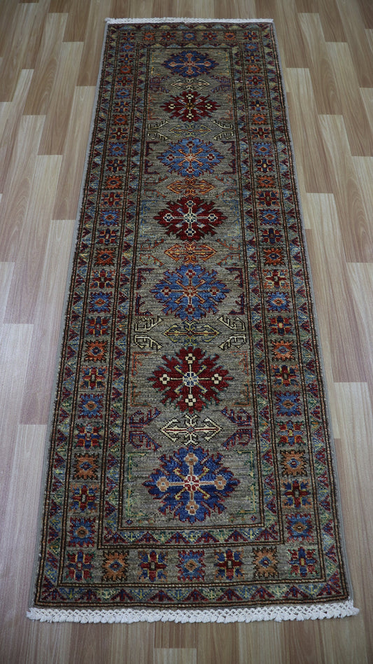 8 Ft Gabbeh Multicolor Afghan Hand Knotted Wool Runner Rug