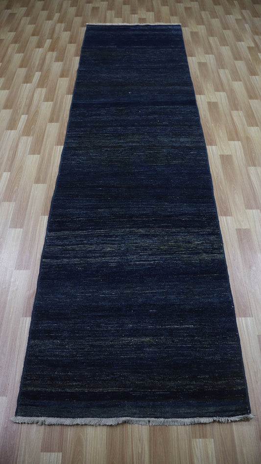 11 Ft Gabbeh Runner Rug, Navy Blue Afghan Hand Knotted Wool Traditional Rectangle Carpet, Entryway Rug, Hallway Rug, Kitchen Rug, Foyer Rug