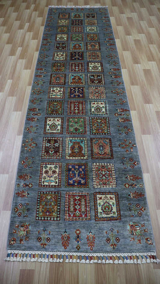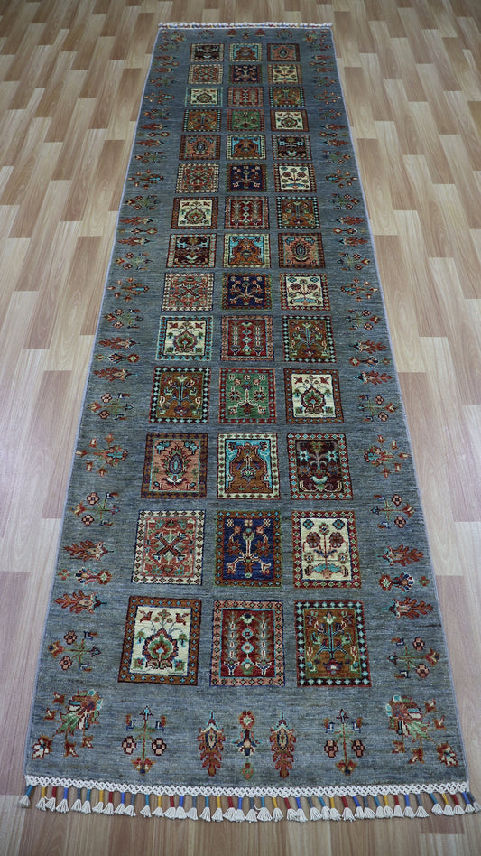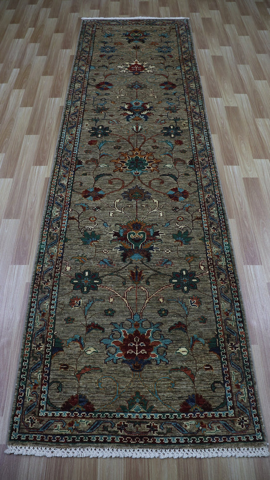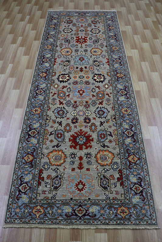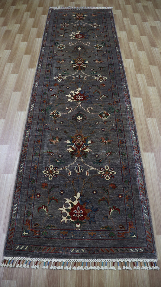 10 Ft Traditional Runner Rug, Gray Afghan Hand Knotted Wool Oriental Rectangle Carpet, Entryway Rug, Hallway Rug, Kitchen Rug, Foyer Rug