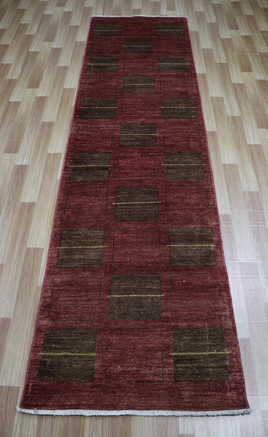 9 ft Red Afghan Runner Rug, Tribal Hand Knotted Wool Traditional Runner, Rugs For Hallway, Entryway Rug, Foyer Rug, Kitchen Rug, Office Rug