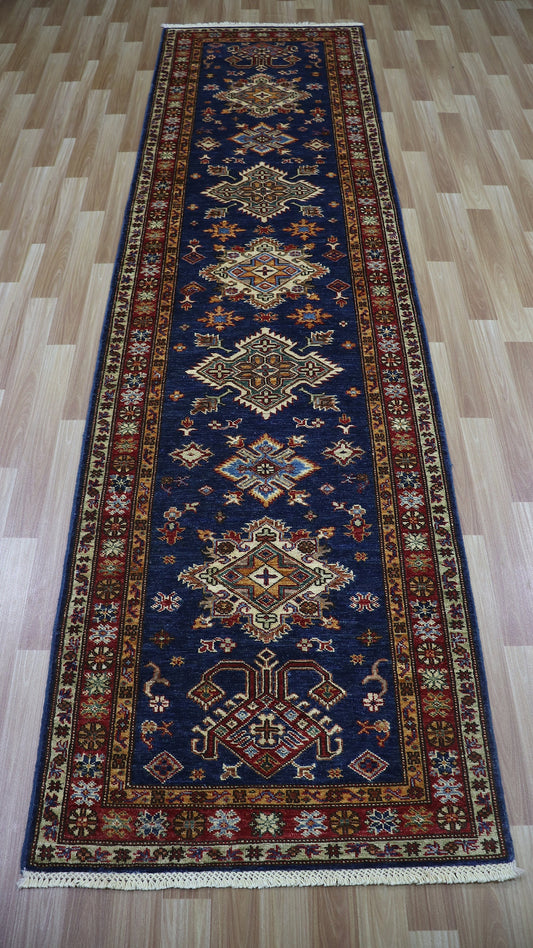 10 Ft Kazak Oriental Runner Rug, Afghan Hand Knotted Wool Traditional Rectangle Carpet, Entryway Rug, Hallway Rug, Kitchen Rug, Foyer Rug