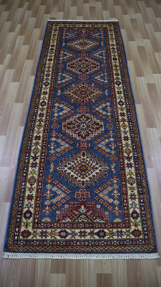 8 Ft Oriental Kazak Runner Rug, Afghan Hand Knotted Wool Traditional Rectangle Carpet, Entryway Rug, Hallway Rug, Kitchen Rug, Foyer Rug