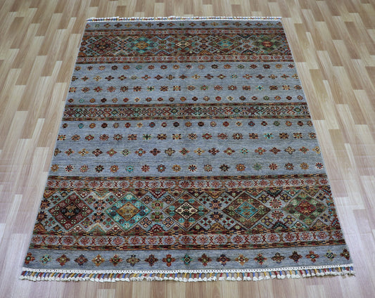 5x7 Ft Tribal Area Rug, Gray Afghan Hand Knotted Wool Traditional Rectangle Carpet, Rugs For Living Room, Bedroom Rug, Dining Table Rug