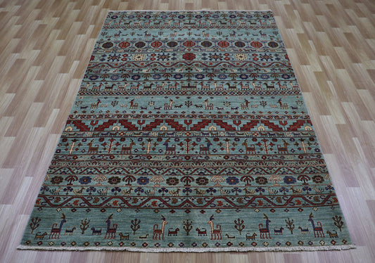 5x8 ft Animal Design Tribal Area Rug, Blue Afghan Hand Knotted Wool Traditional Rectangle Carpet, Living Room Rug, Bedroom Rug, Kid Room Rug