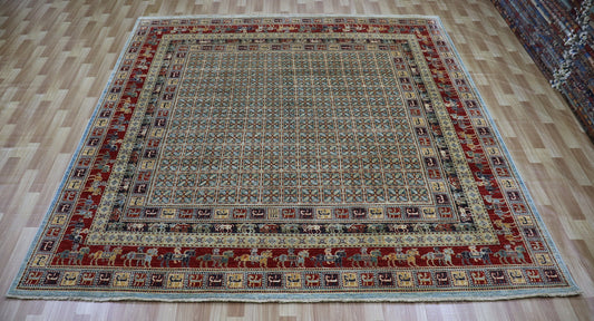 9x9 Ft Pazyryk Square Area Rug, Afghan Hand Knotted Wool Traditional Carpet, Rugs For Living Room, Bedroom Rug, Dining Table Rug, Animal Rug