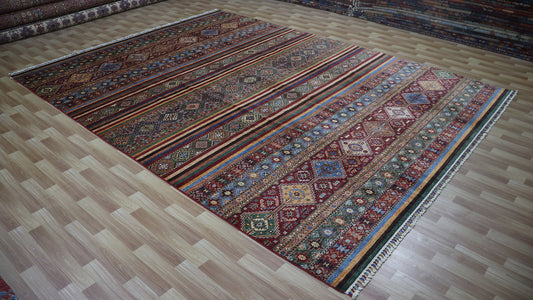 8x10 Ft Tribal Garden Area Rug, Afghan Hand Knotted Wool Traditional Rectangle Carpet, Rugs For Living Room, Bedroom Rug, Dining Table Rug