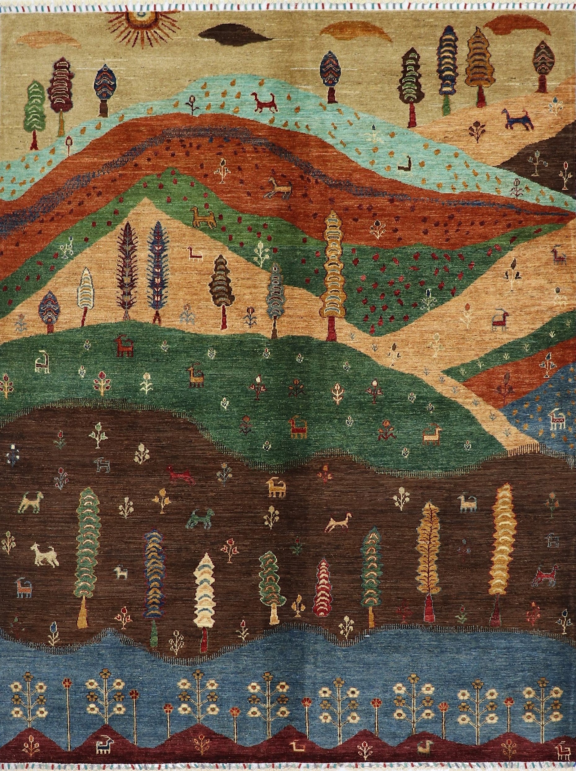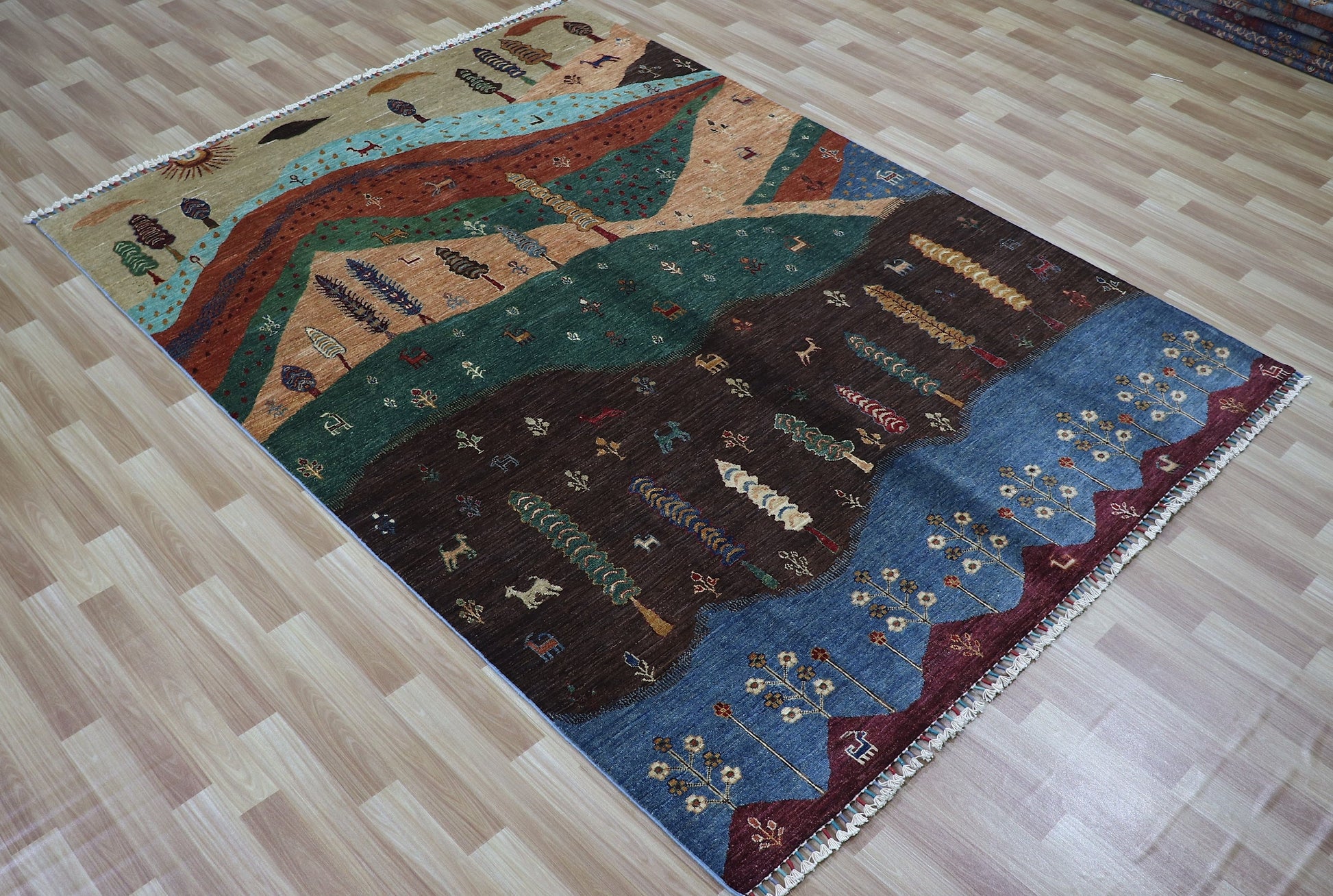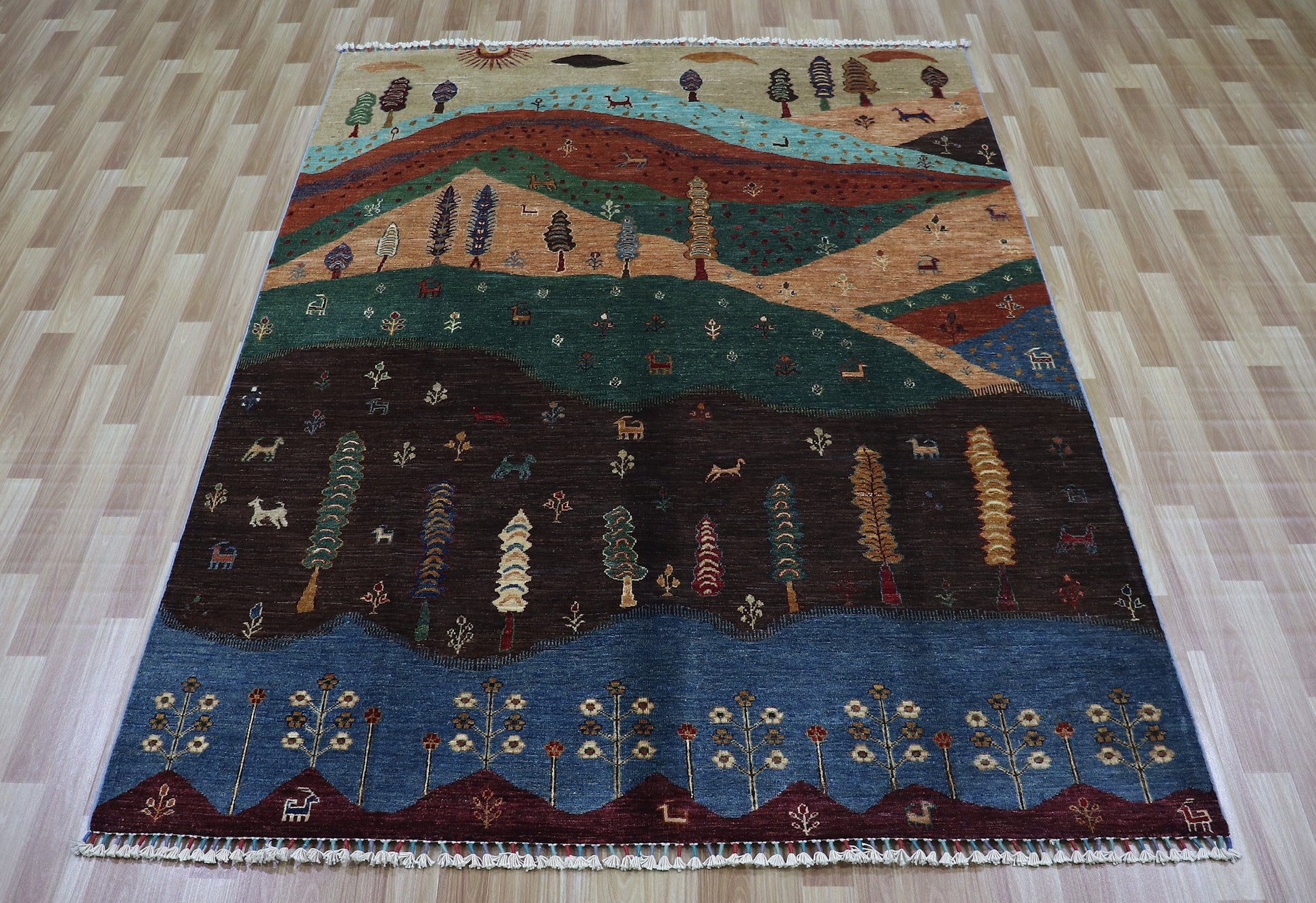 6x8 Ft Tree Of Life Landscape Area Rug, Multicolor Afghan Hand Knotted Wool Traditional Rectangle Carpet, Rugs For Living Room, Bedroom Rug,
