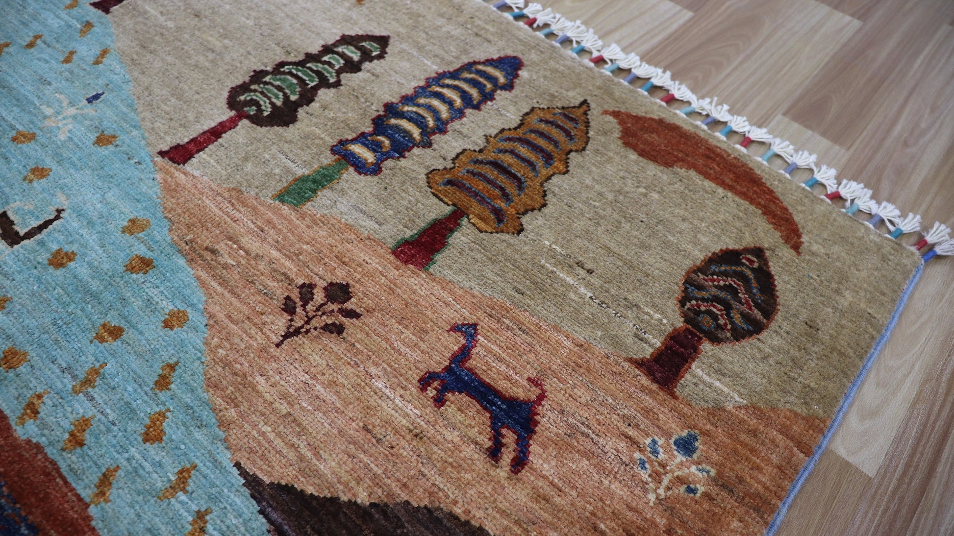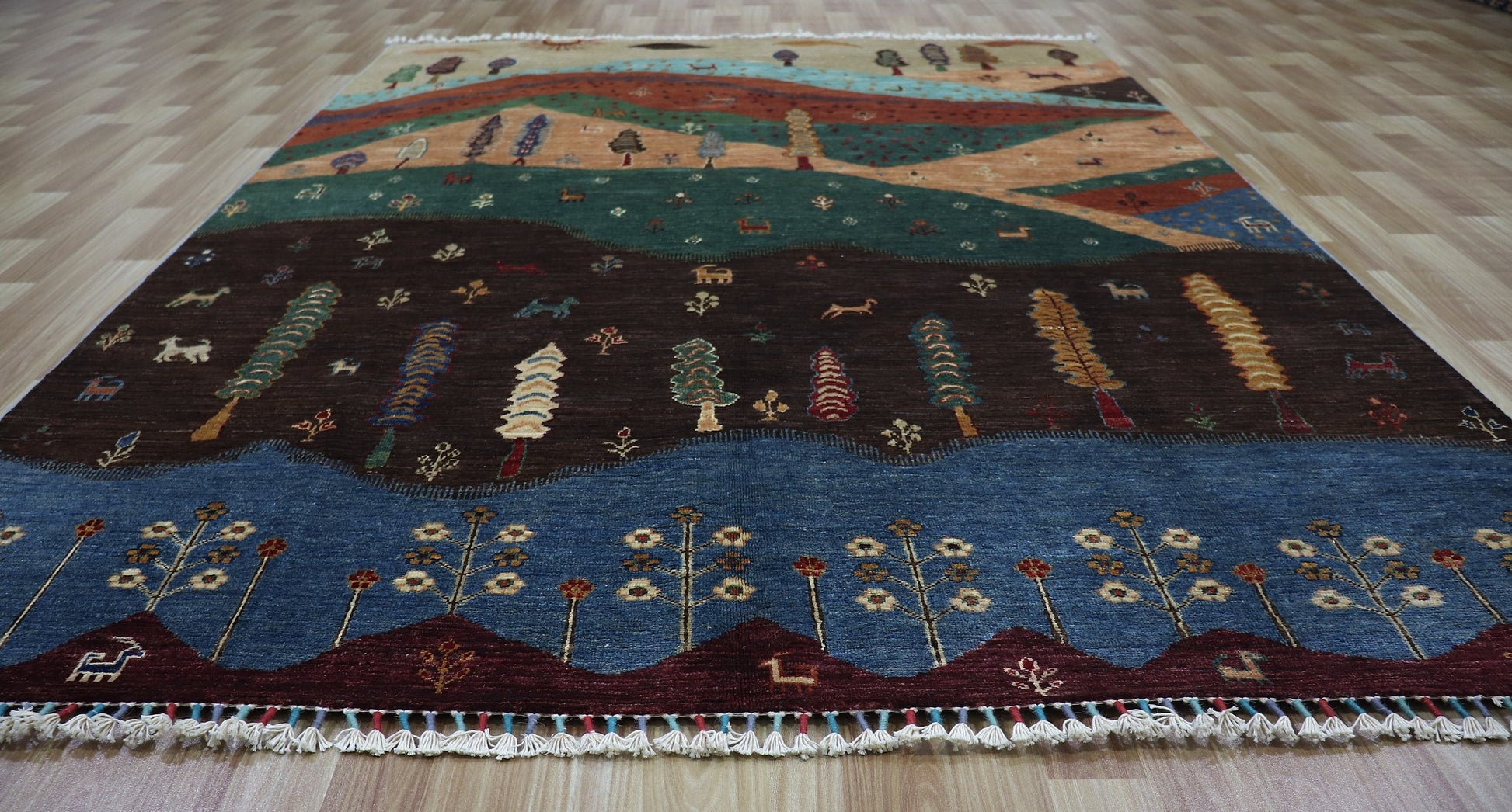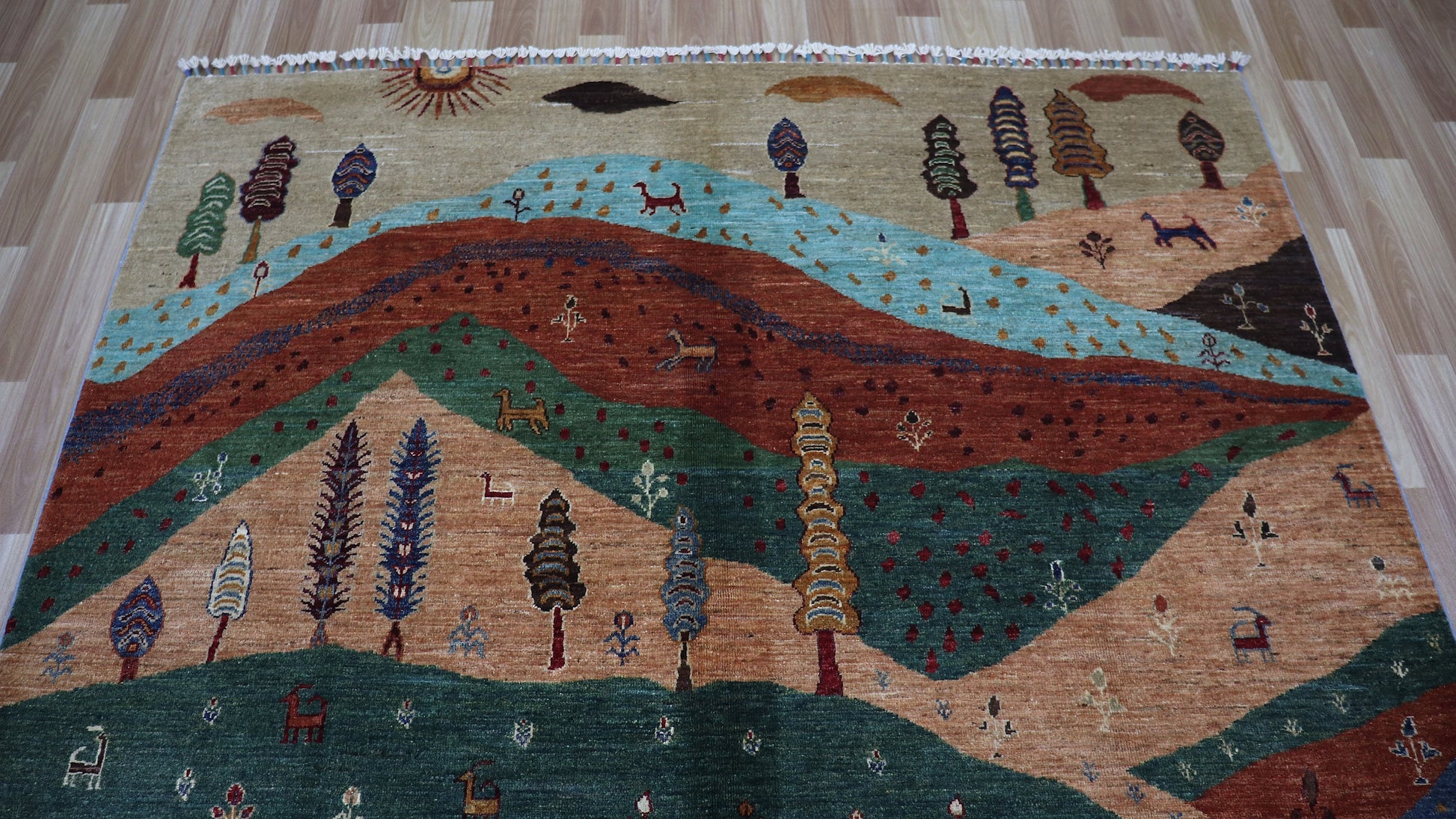 6x8 Ft Tree Of Life Landscape Area Rug, Multicolor Afghan Hand Knotted Wool Traditional Rectangle Carpet, Rugs For Living Room, Bedroom Rug,