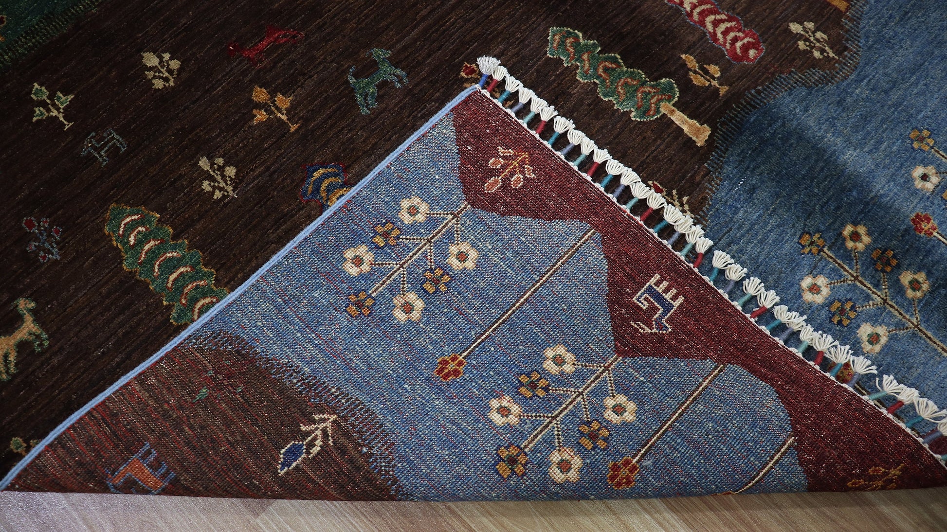 Note: The pictures are taken outside natural light without editing room hence, it usually effects the colors of the rug in the picture. The colors in the rug will be perceived differently depending on the angle you view from. For this, close up pictures are displayed to show the actual colors. In most cases the rug is more vibrant when seen in person.