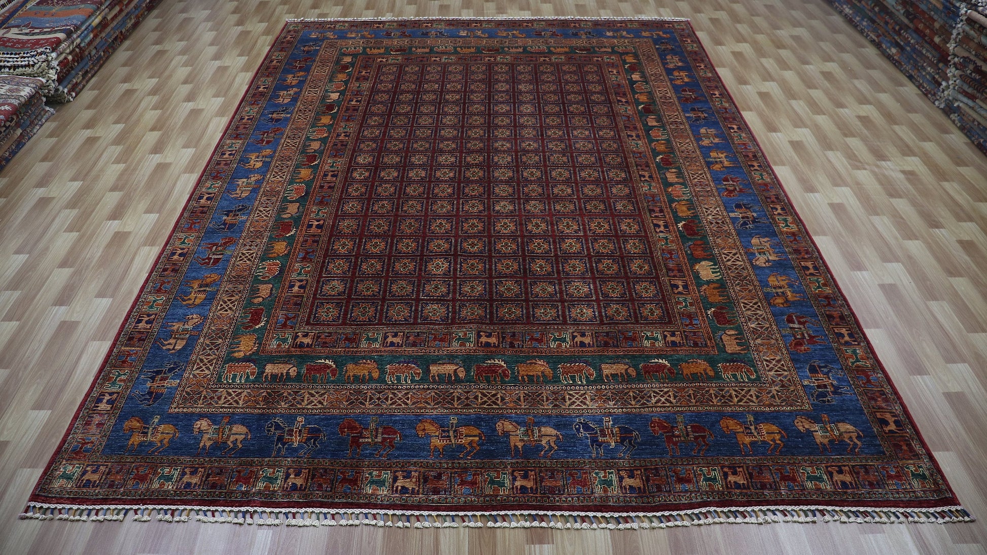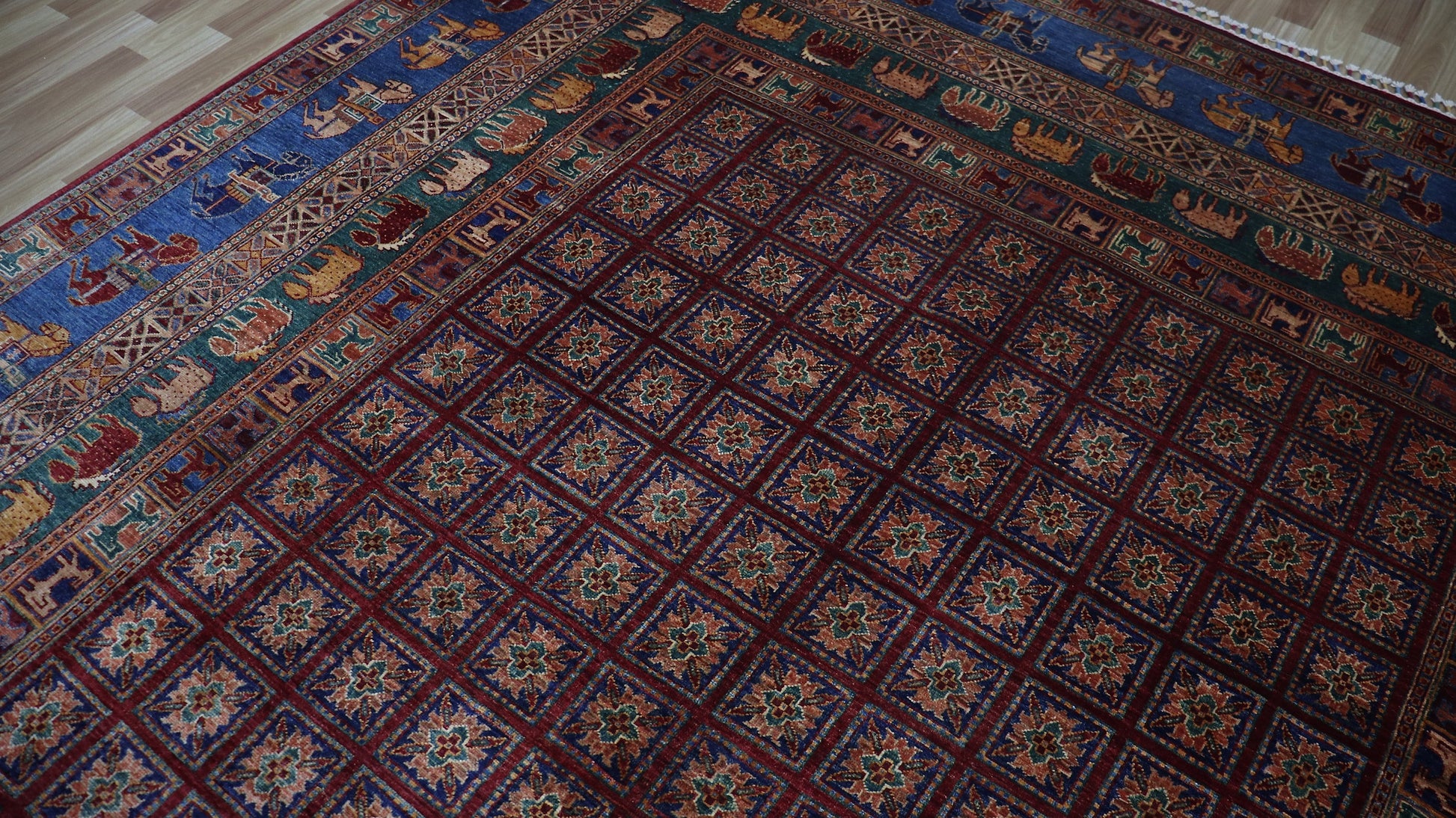 9x13 Ft Animal Design Pazyryk Large Area Rug, Afghan Hand Knotted Wool Tribal Rectangle Carpet, Living Room Rug, Bedroom Rug, Kids Room Rug